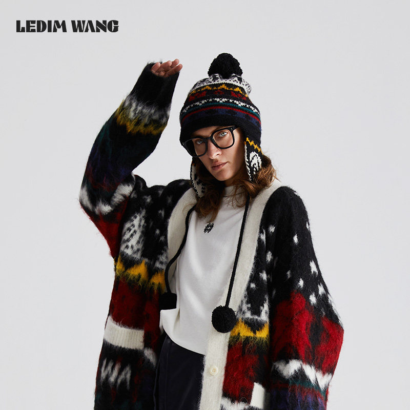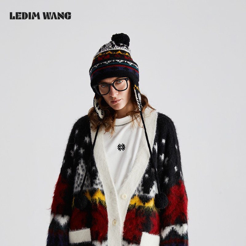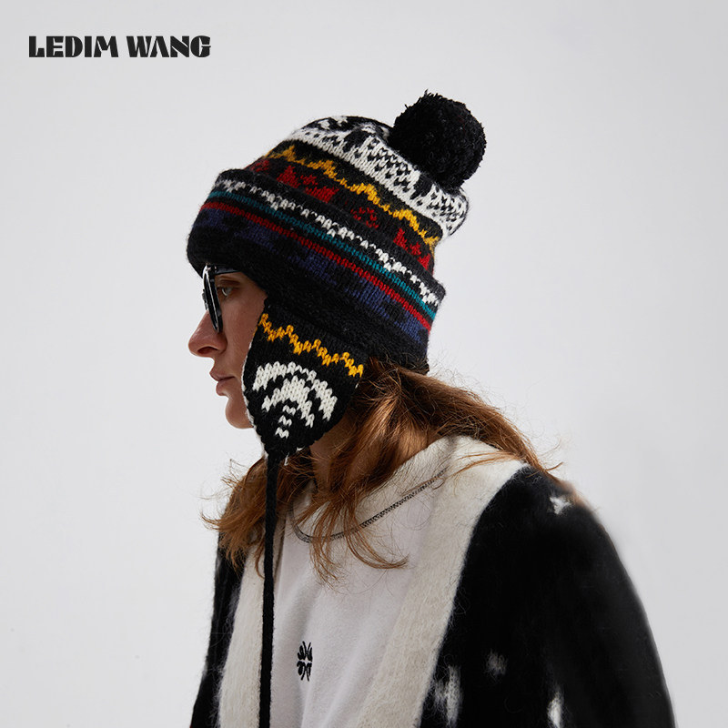 毛线帽圣诞新年软糯护耳帽子 新款 LEDIM WANG毛球提花针织帽女冬季
