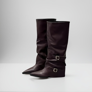 皮带扣裤 管靴炸街 筒靴粗跟靴子长靴女直筒靴辣妹高筒靴尖头黑色裤