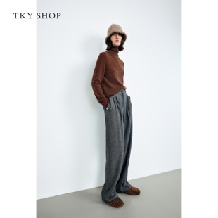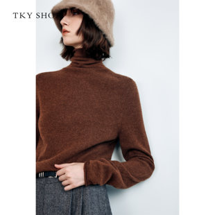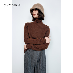 针织打底衫 品牌高级感羊毛衫 女半高领宽松毛衣秋冬加厚羊绒长袖