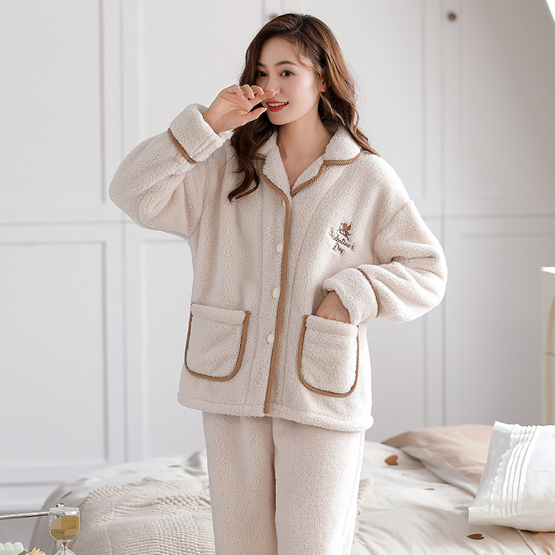 可单穿外出保暖家居服套装 珊瑚绒情侣睡衣男女秋冬季 加绒加厚时尚
