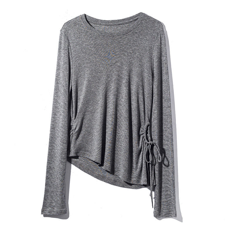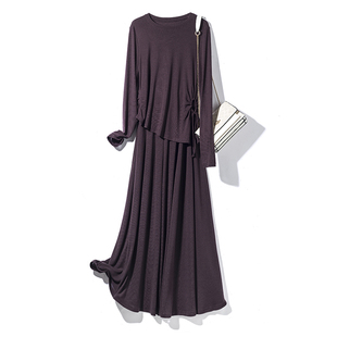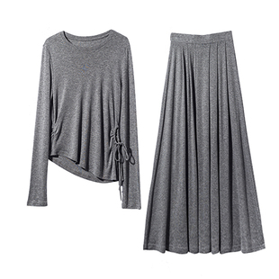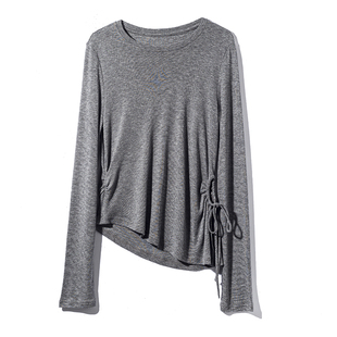 圆领100%纯山羊绒衫 灰色宽松打底上衣 女毛衣秋冬假两件拼色针织衫