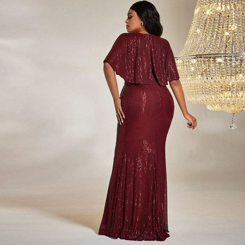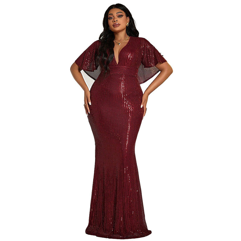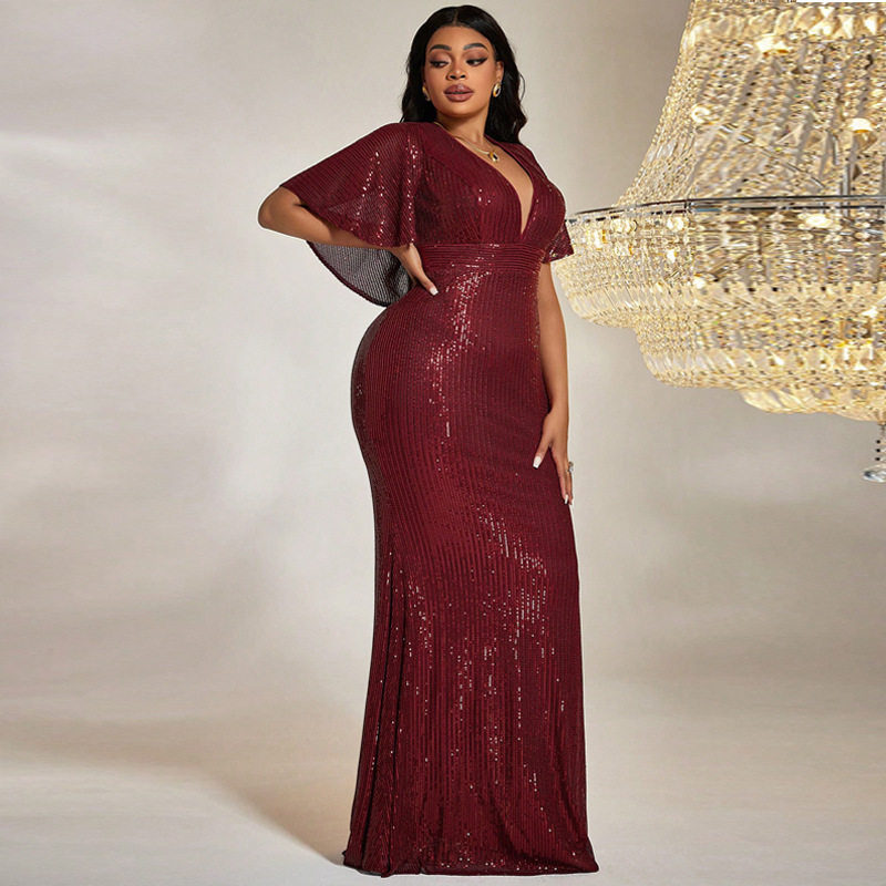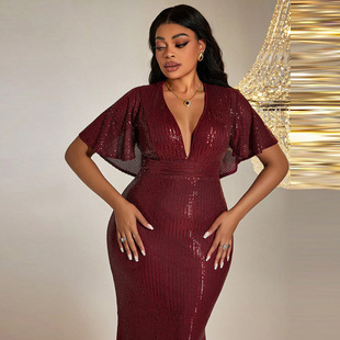 连衣裙礼服 性感v领包臀长裙亮片大码 KY663跨境亚马逊新款 欧美秋装