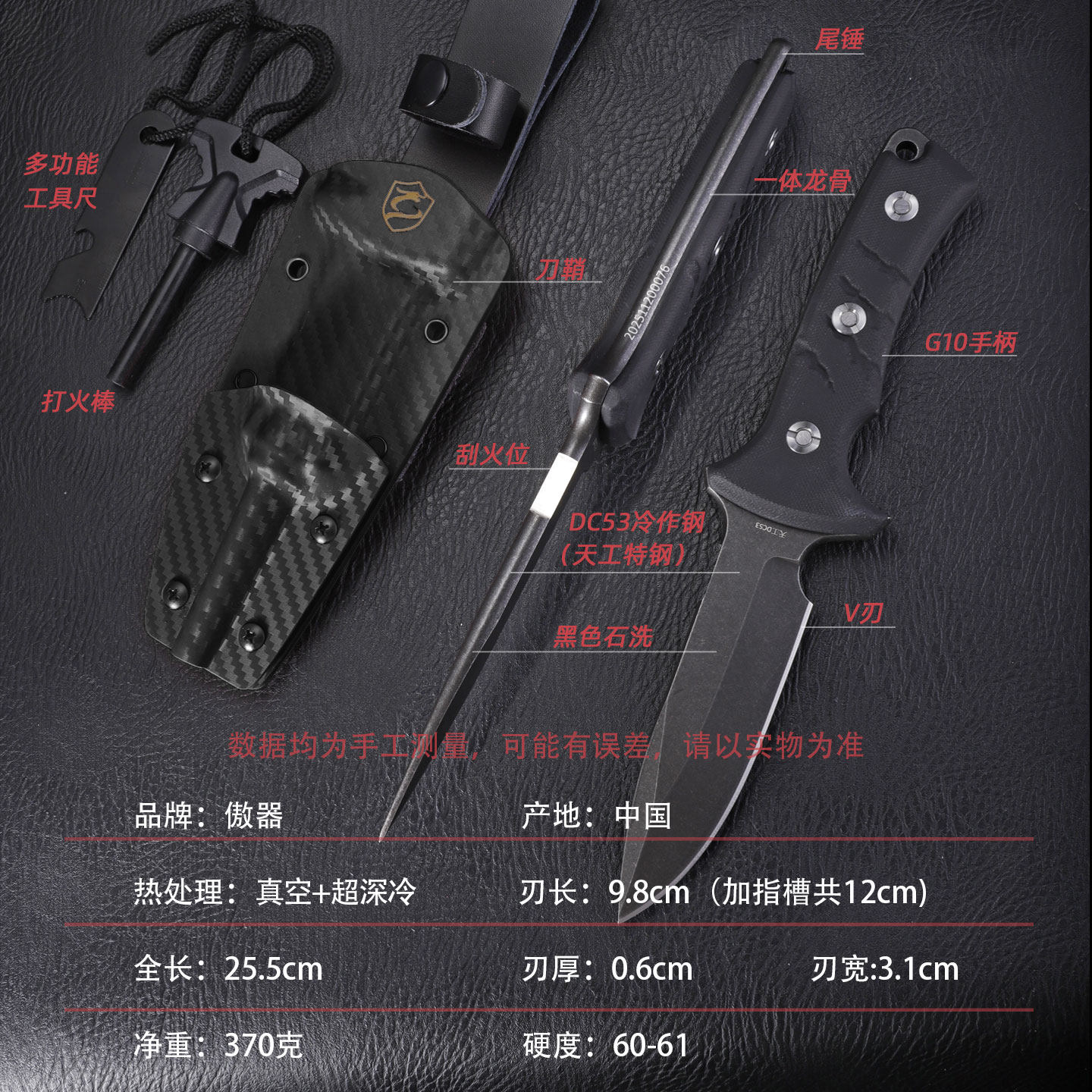 傲器狼居胥2.0麒麟户外求生刀DC53钢生存刀荒野探险野营防身刀具