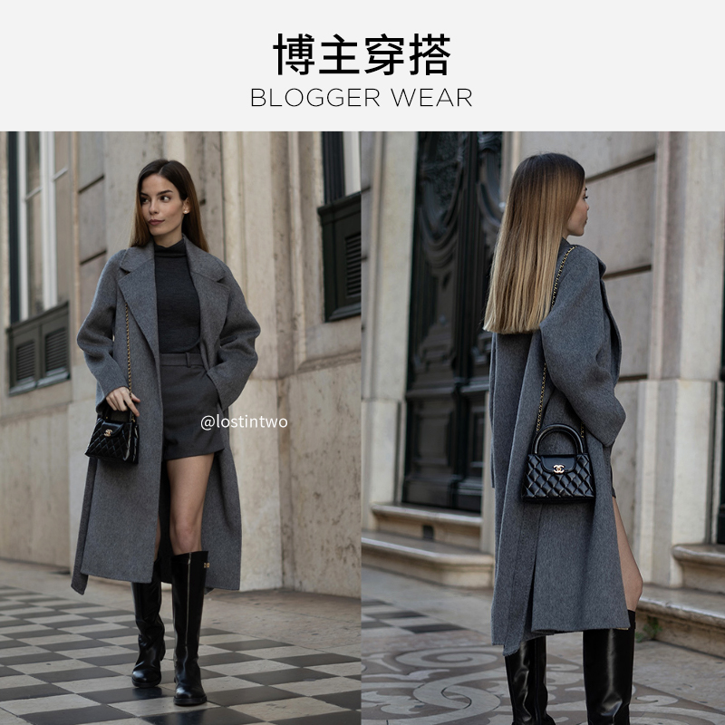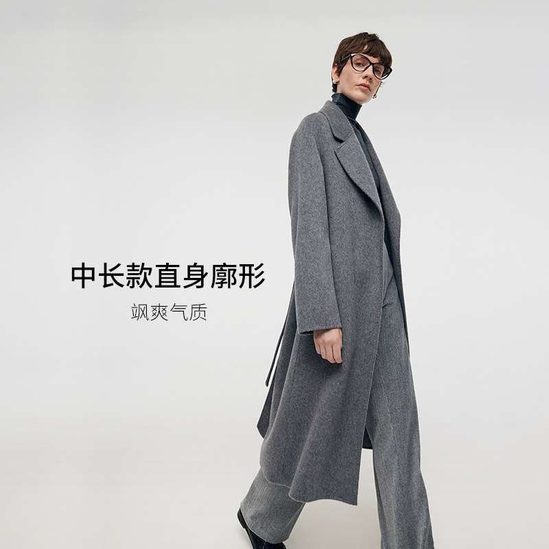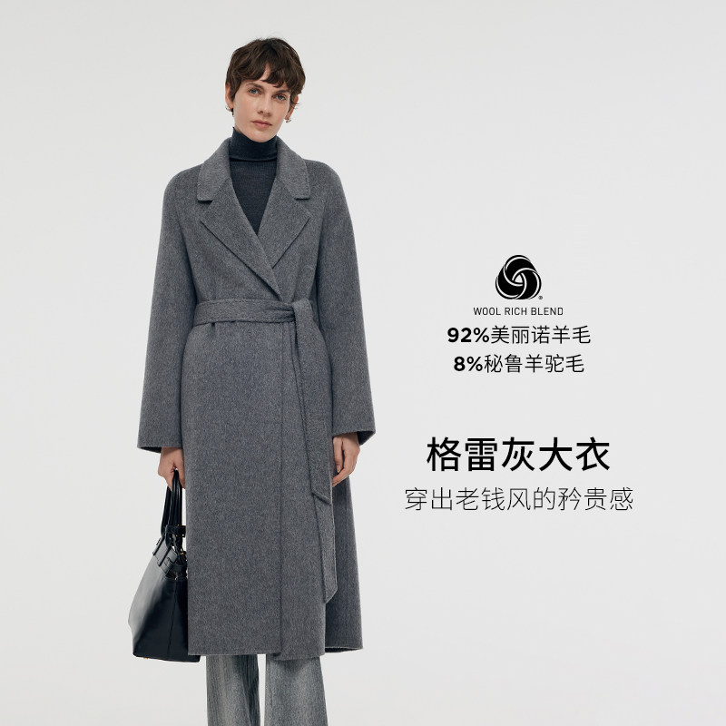 慵懒风双面羊毛大衣女中长款 灰色毛呢外套高级感