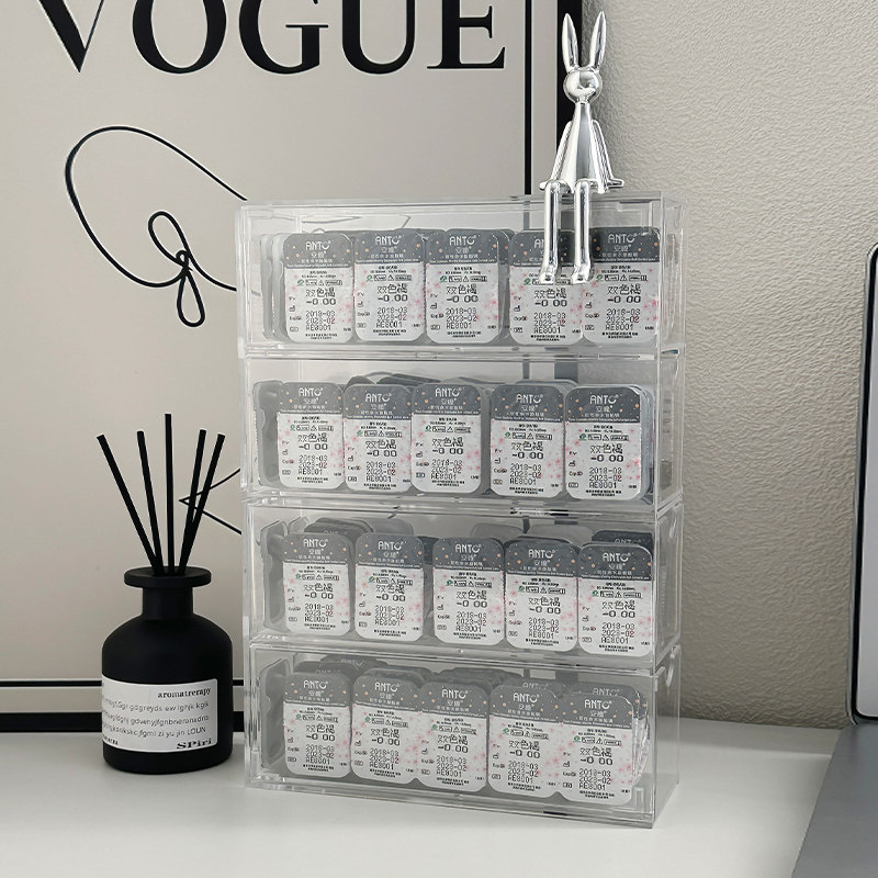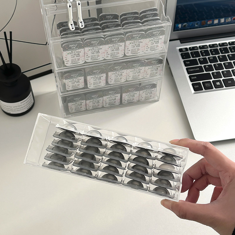 日抛美瞳收纳盒多副高级感大容量四层抽屉式 隐形眼镜盒分格透明盒