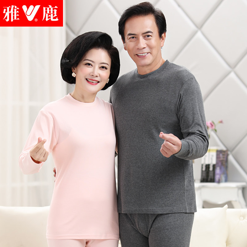 爸爸中高领女衬衣衬裤 纯棉保暖内衣套装 男士 雅鹿中老年人秋衣秋裤