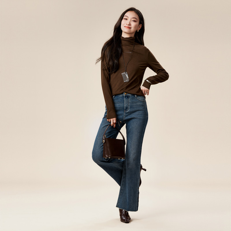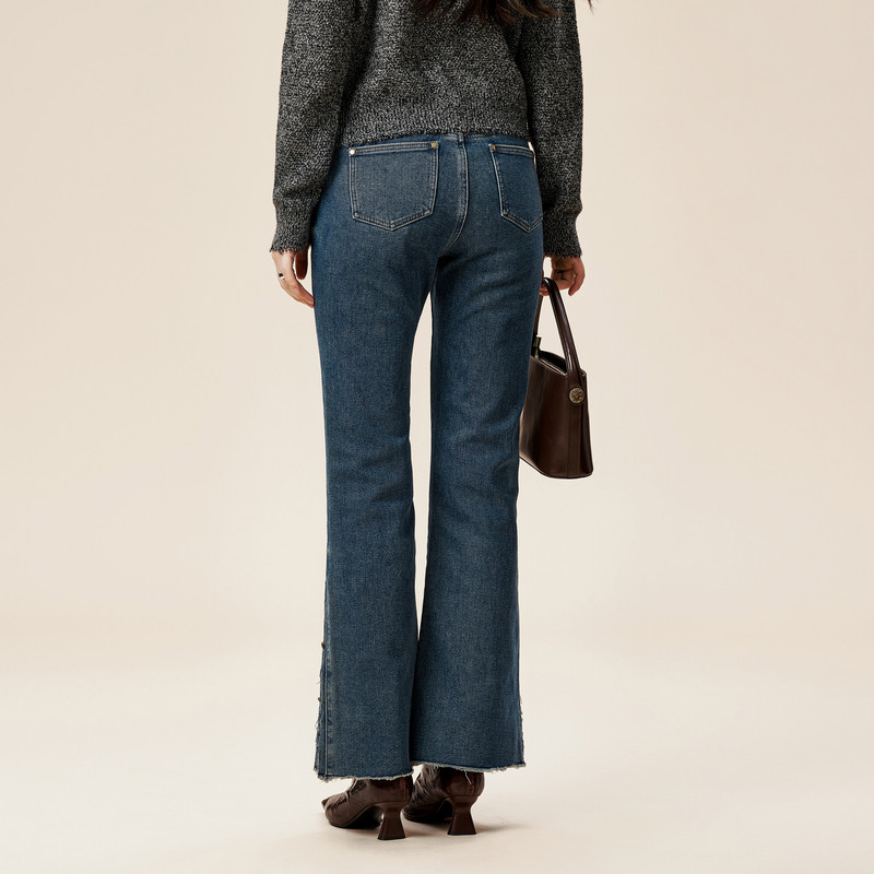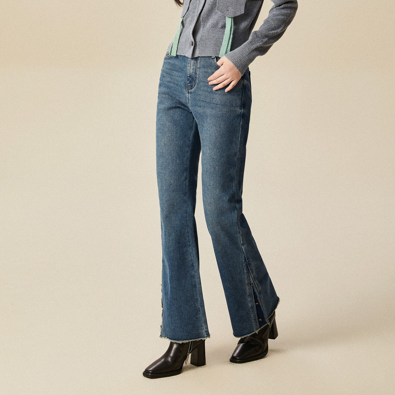女高腰显瘦直筒气质休闲喇叭裤 复古微喇牛仔裤 摇摆伦巴 pusumede