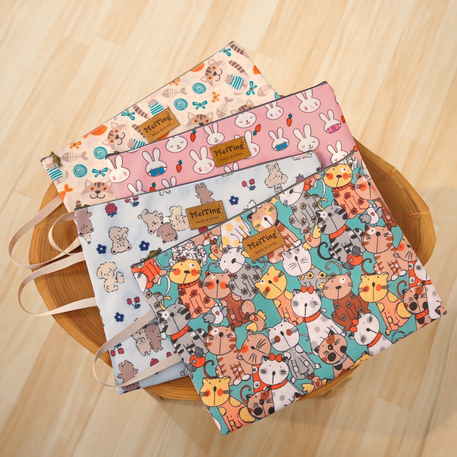 韩版 卡通防水A4文件包拉链资料袋便携大容量孕产检档案书本收纳袋