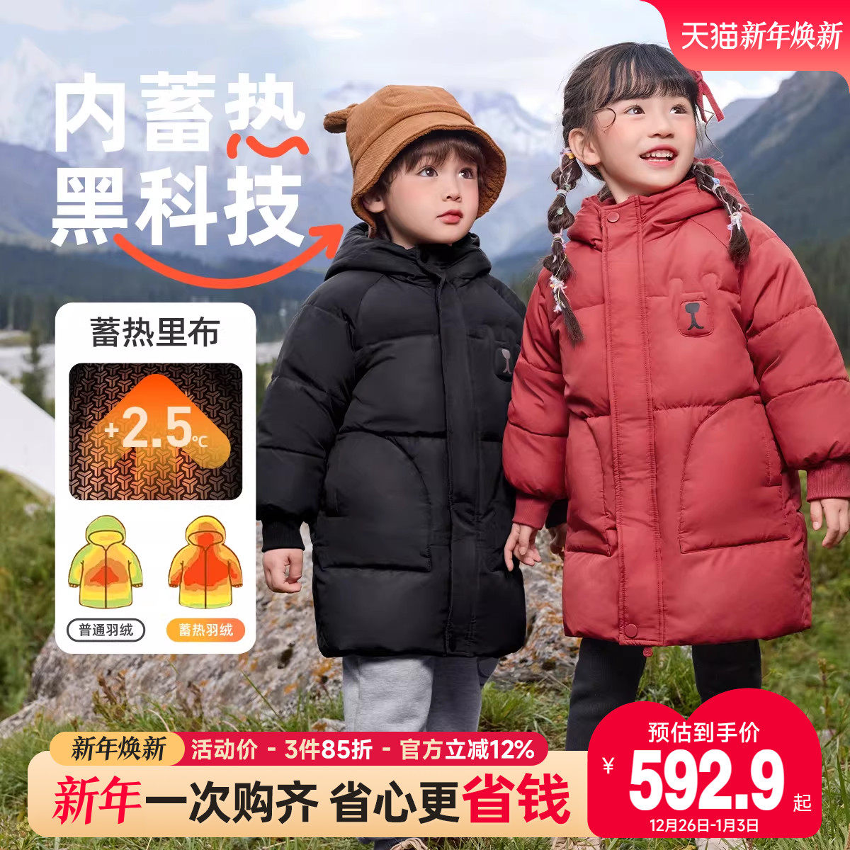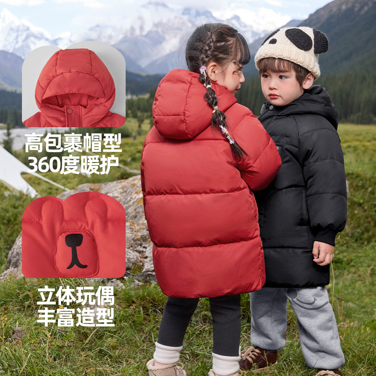 儿童外套加绒冬装 女童棉袄男童上衣加厚童装 冬季 儿童羽绒服中长款