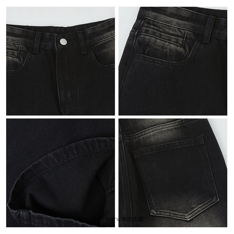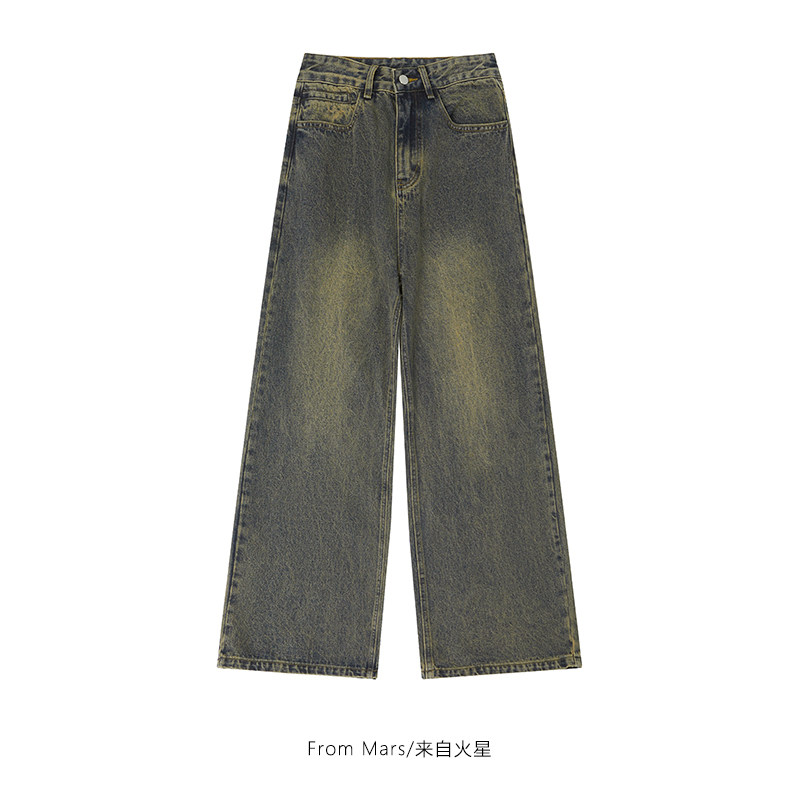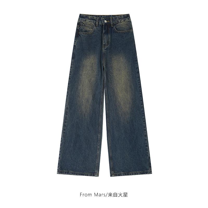 复古潮流做旧直筒阔腿百搭宽松男女牛仔长裤 次次包容 Mars From