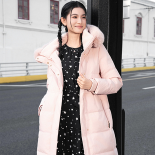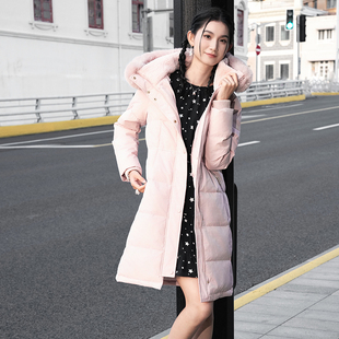 连帽气质大衣修身 艾莱依冬季 新款 长款 加厚收腰休闲外套 羽绒服女款