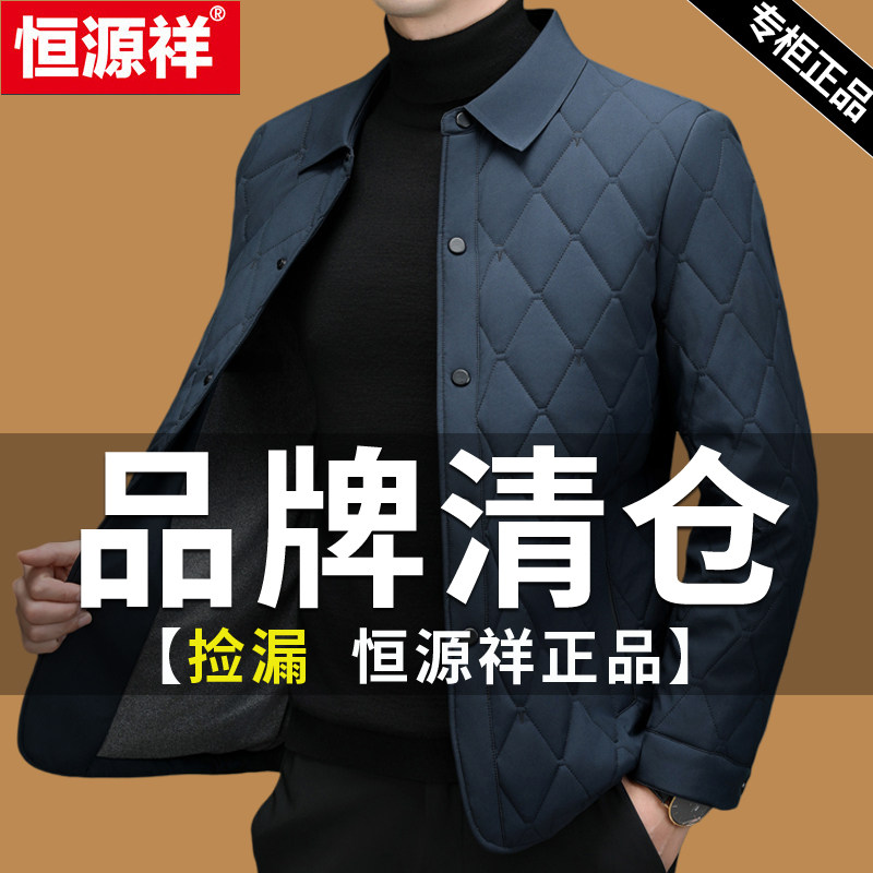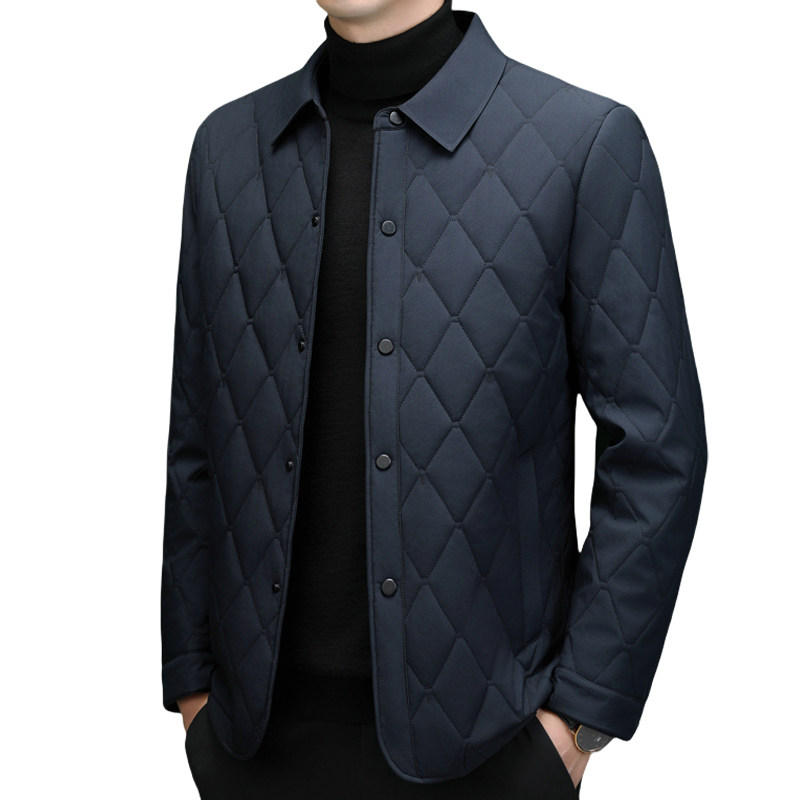 恒源祥菱形格棉服男桑蚕丝薄棉袄外套男2024新款 高端薄棉衣 秋冬季