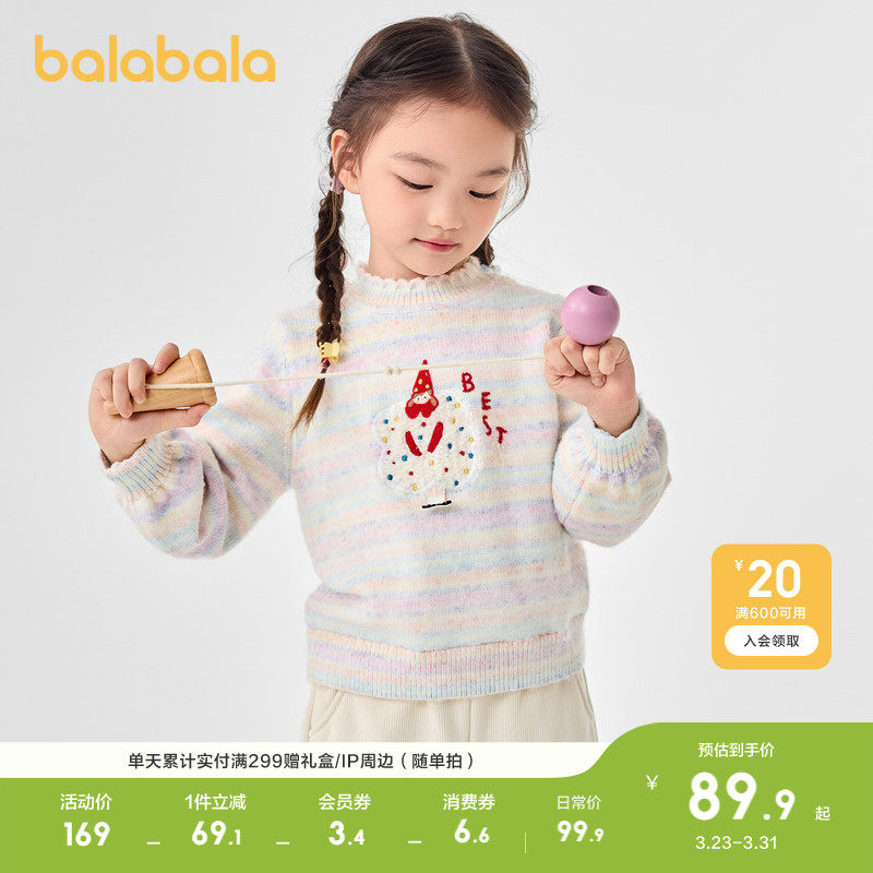 上衣 线衣百搭时尚 巴拉巴拉童装 儿童毛衣女童2026春秋甜美绣花毛衫