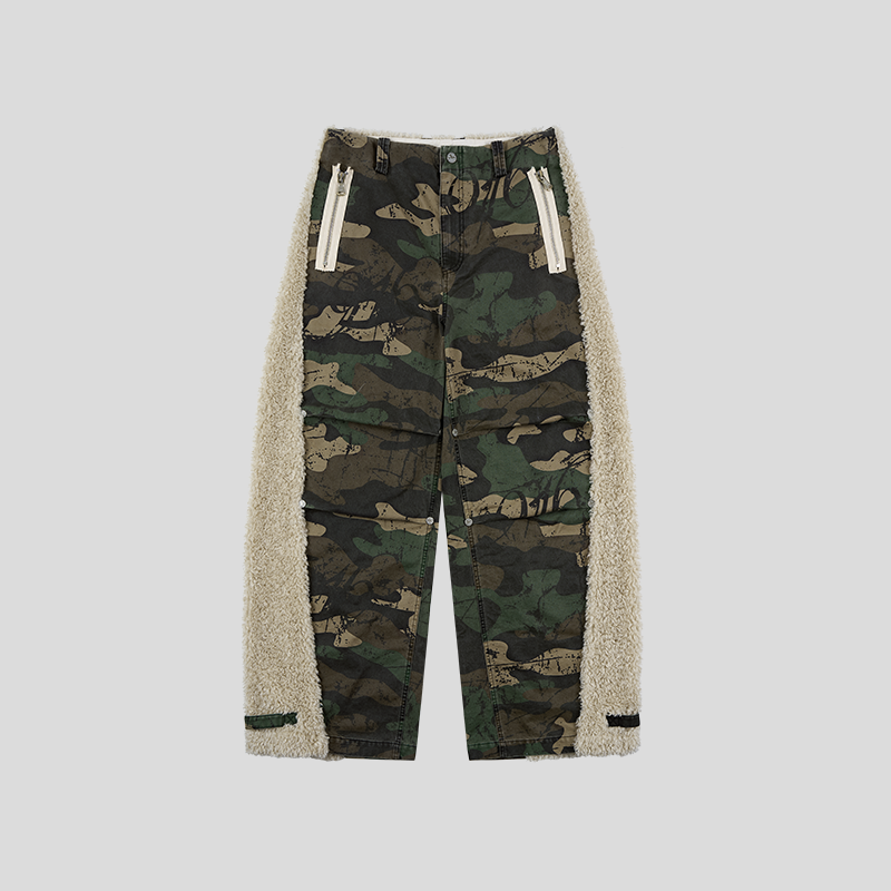 直筒休闲裤 迷彩拼接仿羊驼绒刺绣工装 916 GOODBAI