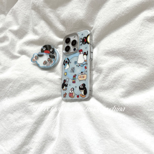 SHERRY ins风蓝色菱格可爱雪人企鹅磁吸适用于苹果17ProMax手机壳iPhone16Pro小众少女心15简约14卡通13清新
