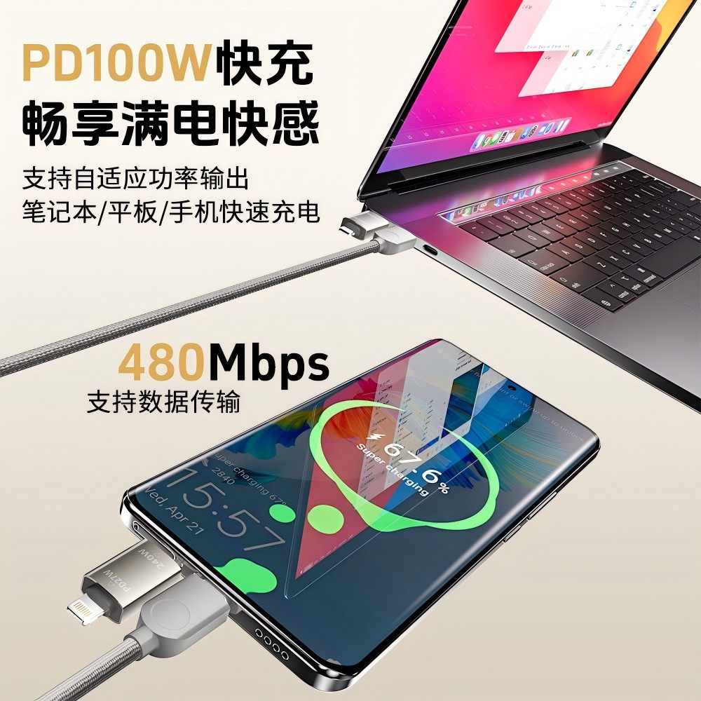 C编织数据线 倍魔 12promax华为Type 240w磁吸收纳四合一快充线适用iPhone17