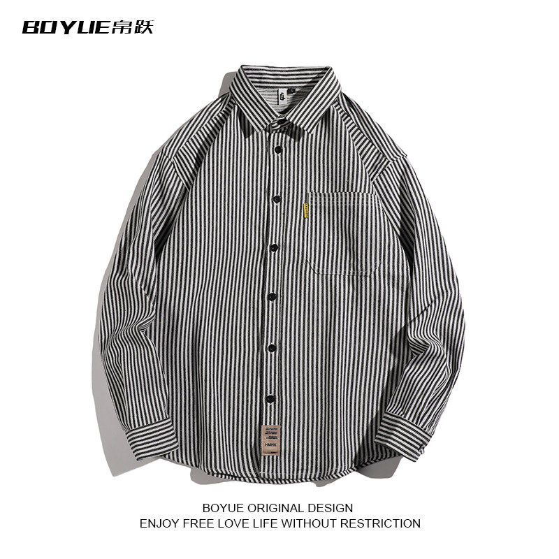 衬衫 潮流痞帅百搭条纹长袖 新款 BOYUE帛跃春秋简约百搭气质男时尚