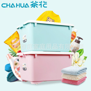 茶花 加厚有盖储物箱大号塑料收纳箱特大号衣物收纳箱