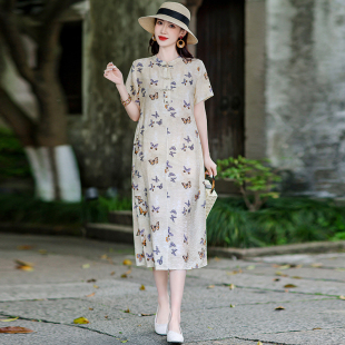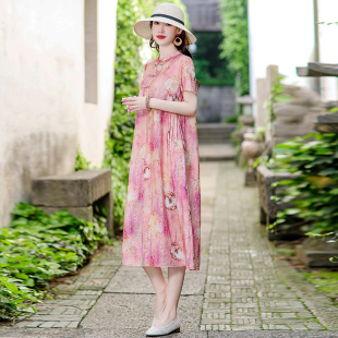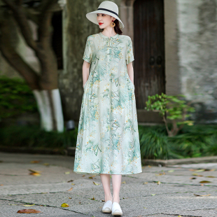 妈妈装 新款 女士盘扣 圆领宽松大气棉绸旗袍中长裙2026夏季 新中式
