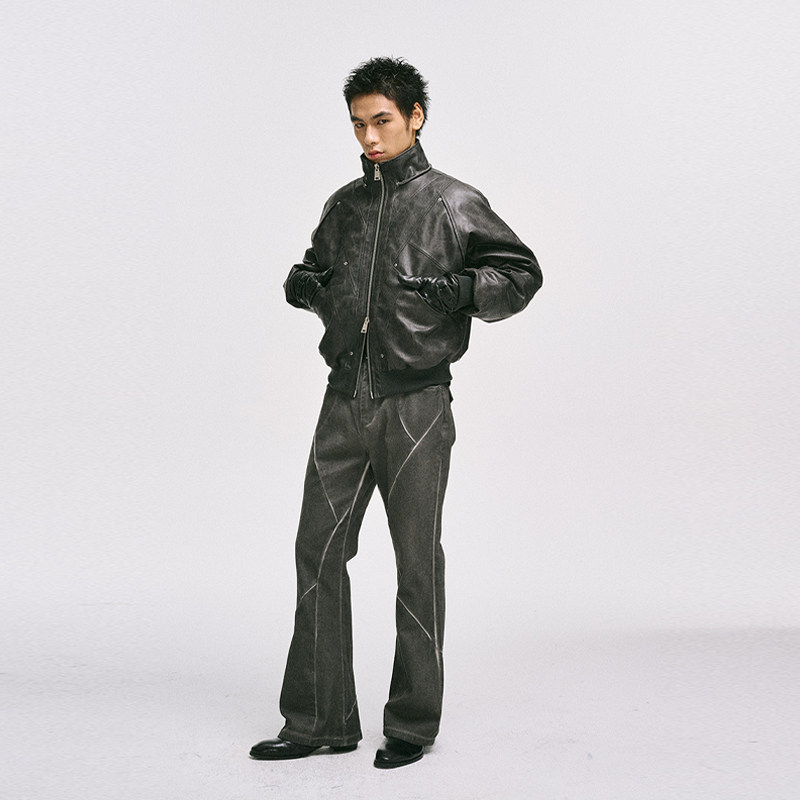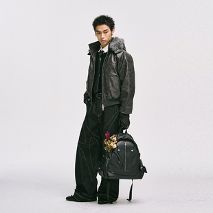 DESERTO 50%羊毛人字纹可调节下摆领型绑带骑士夹克暖绒内里秋冬