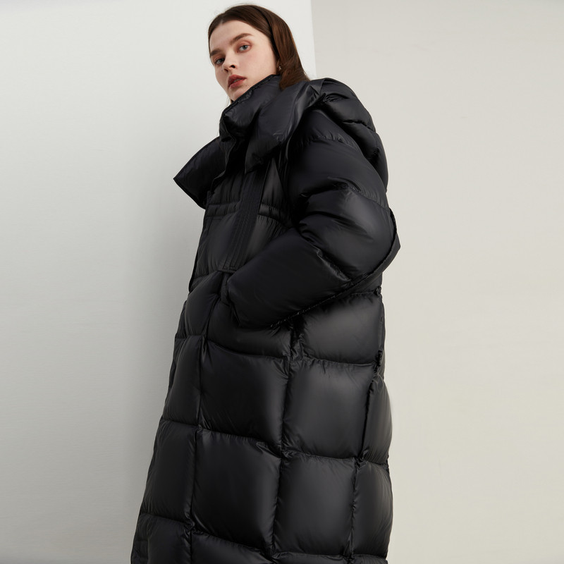 90白鸭绒巫师帽羽绒服 女装 胖mm冬季 高充绒量长羽绒服木子理想大码