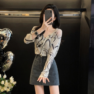 透明防晒针织衫 开衫 女外套春秋季 设计感休闲宽松长袖 上衣 新款 薄款