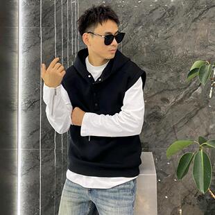 新款 春季 休闲坎肩上衣潮流简约百搭宽松背心 连帽按扣马甲男士 无袖