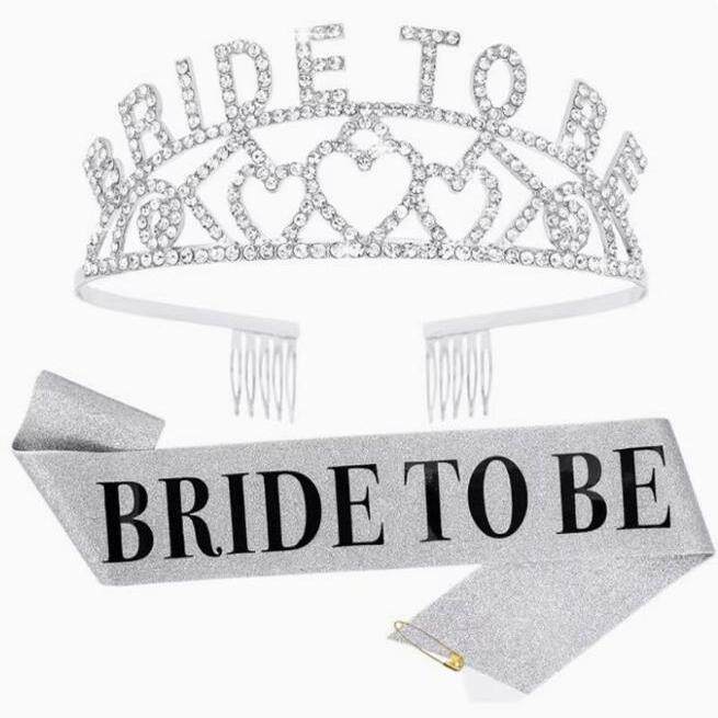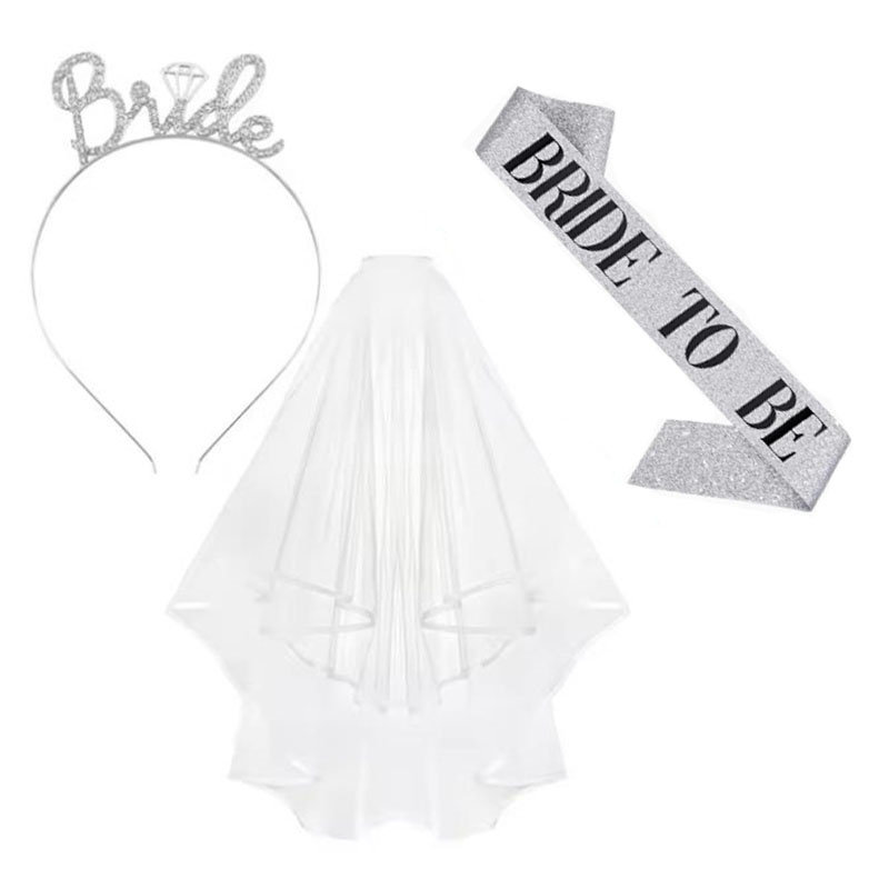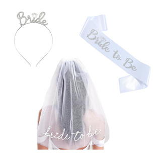 shower拍照道具 be新娘发箍Bridal 单身派对皇冠头纱肩带Bride