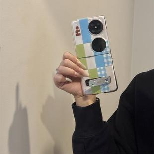 2手机壳FindN3Flip折叠荣耀VFlip2三星Zflip7 5支架nova X小米MIXFlip2华为P50Pocket ins格纹积木适用Pura