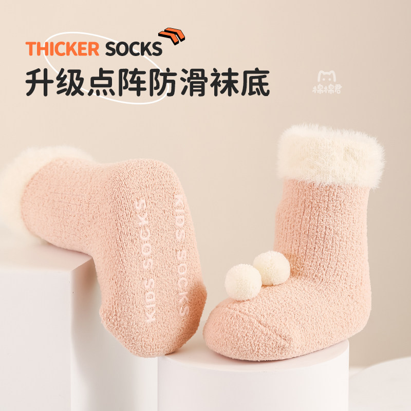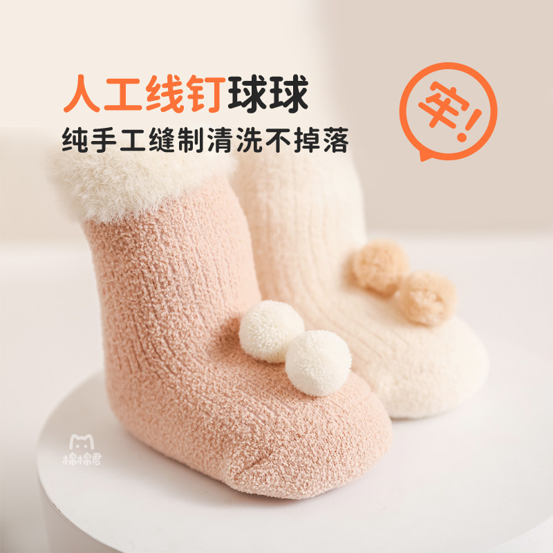 新生婴儿地板袜子0 加厚防滑隔凉加绒可爱中筒袜 3月1岁宝宝秋冬季