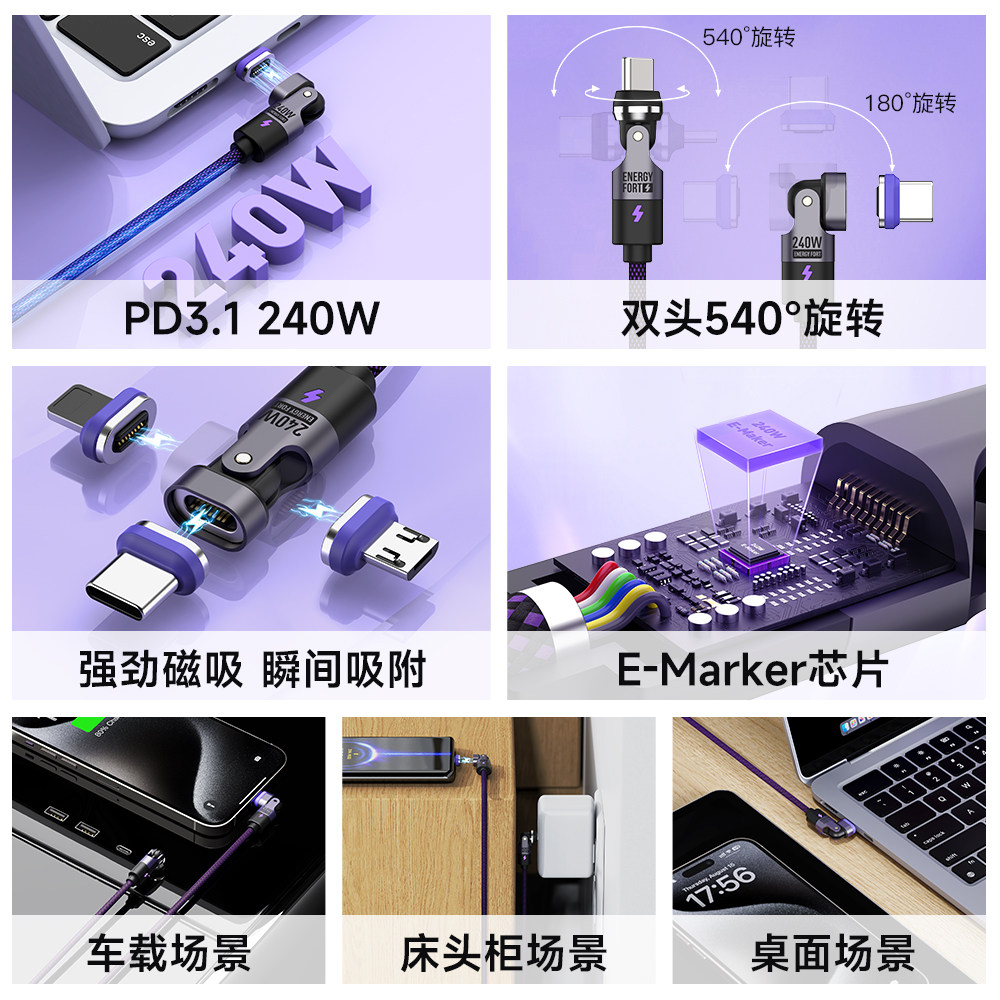 SIKAICASE旋转式 超级快充PD3.1电线强力磁吸头Typec240W闪充适用华为P70小米15Spro苹果17Promax充电器线加长
