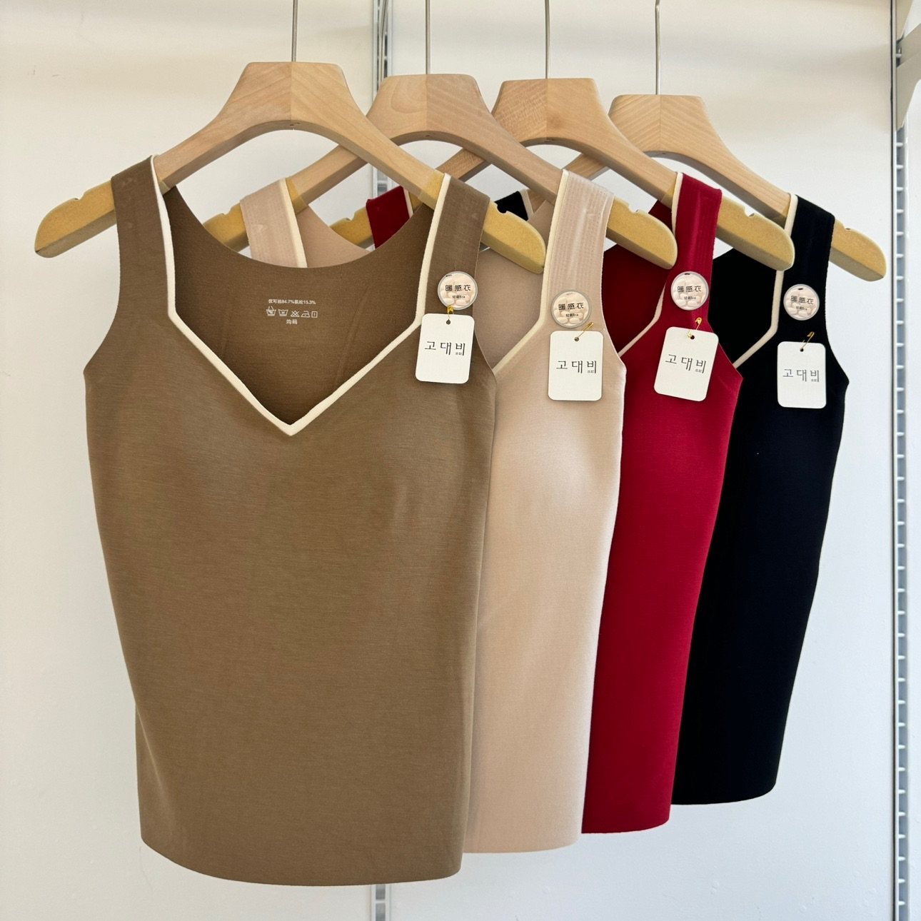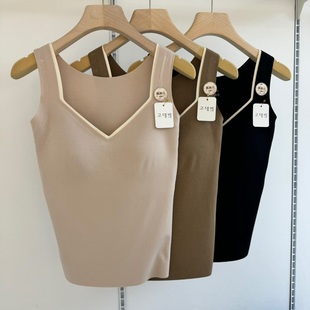 古妃3317秋季 V领撞色中厚杯薄绒磨毛保暖背心轻氧暖感衣打底内衣