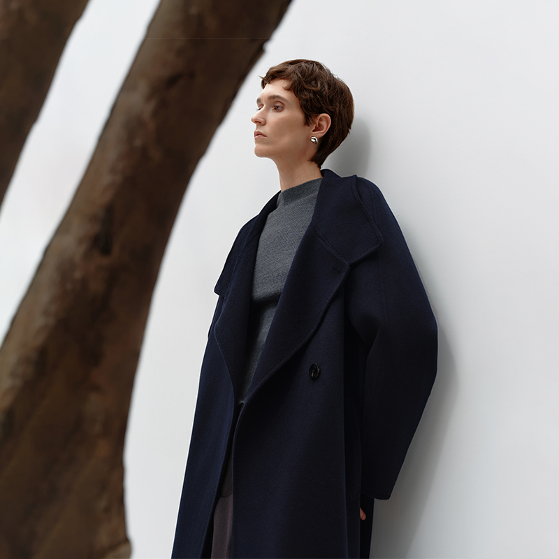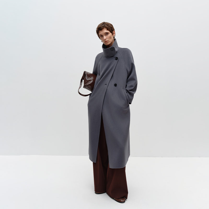 WHYSTUDIO 双面呢大衣 山羊绒高奢质感3ways翻领立领牛角扣中长款