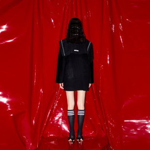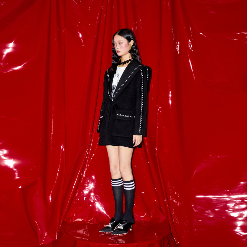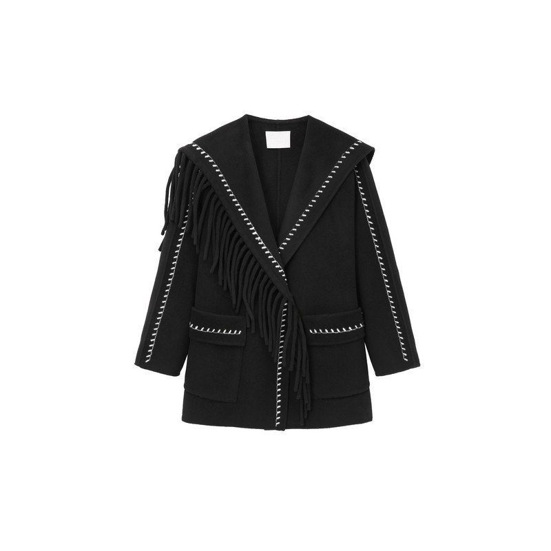 REVAN芮范樱桃系列质感斜肩流苏毛呢大衣RM90302325