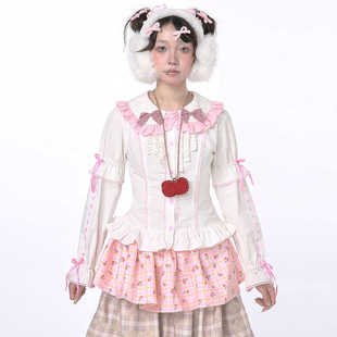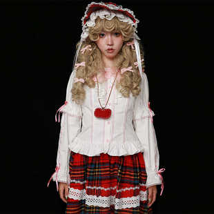 MEME原创设计复古蝴蝶结可爱白色长袖 秋冬 上衣Lolita少女小众衬衫