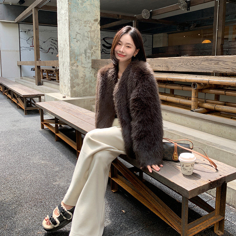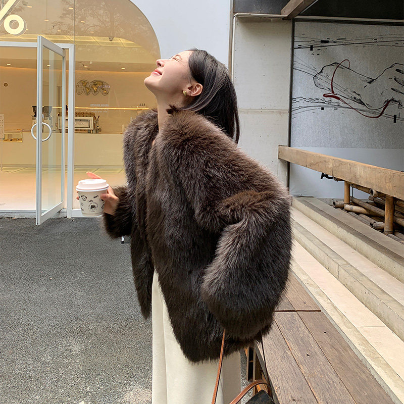 2024冬季 皮毛一体狐狸毛外套女环保高级感显瘦灰棕毛毛大衣 新款