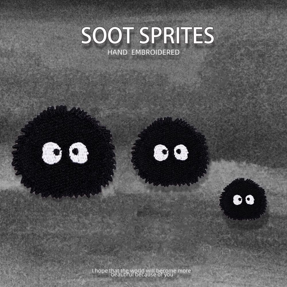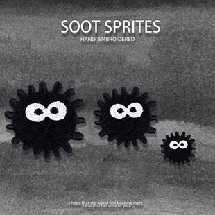 黑色灰精灵刺绣贴手账手机装 饰布贴书包羽绒服自粘贴衣服补丁贴