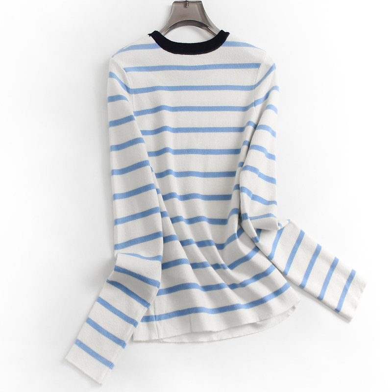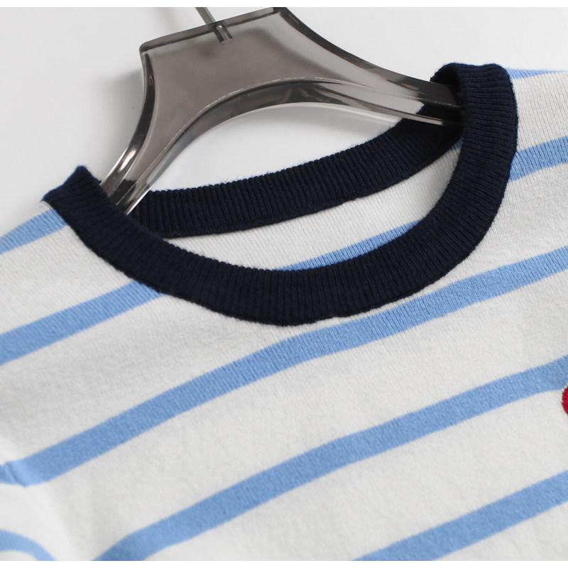 女针织衫 爱心刺绣条纹弹力显瘦修身 长袖 2024秋季 F748 圆领打底衫