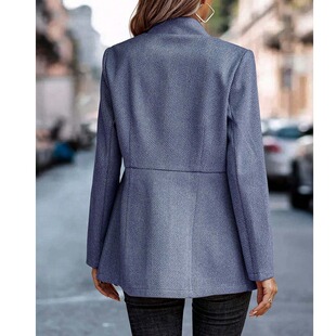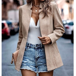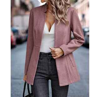 毛呢西服外套女coat 领粉色简约开衫 欧美速卖通秋冬新款 通勤OL西装