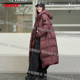 时尚 休闲加厚立领连帽女士长款 高充绒保暖羽绒服 冬季 鸭鸭2025新款