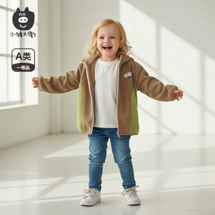 小猪大卫儿童连帽开衫 男童女宝可爱造型颗粒绒外套单上衣外出服