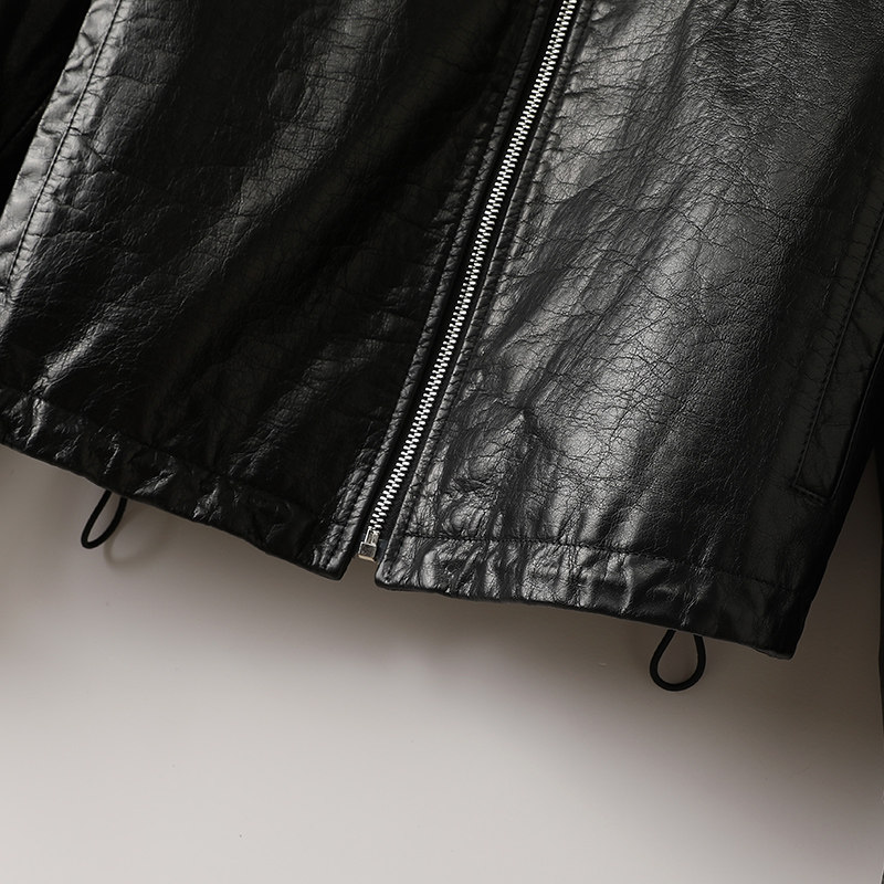 美式 设计感百搭短款 复古夹克 新款 黑色PU皮衣外套女潮牌2024春秋季