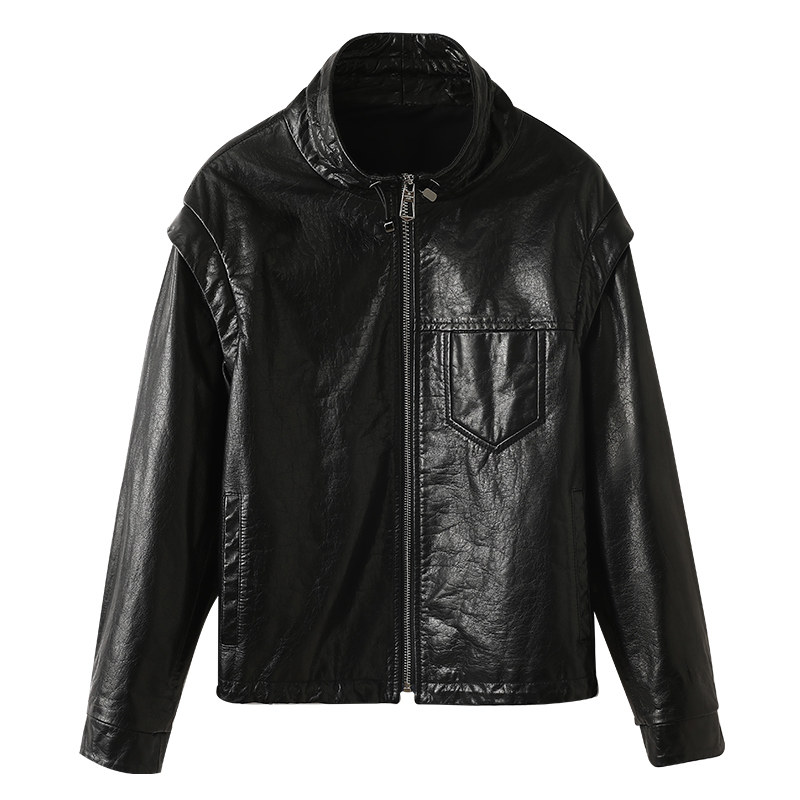 潮 斜拉链复古骑行夹克仿皮机车皮衣外套短款 1966300 春秋新款 男装