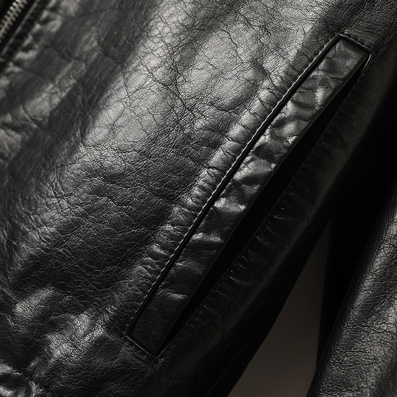 真皮软绵羊皮夹克潮流外套 青年机车帅气男款 海宁男士 皮衣加绒韩版