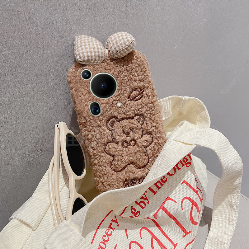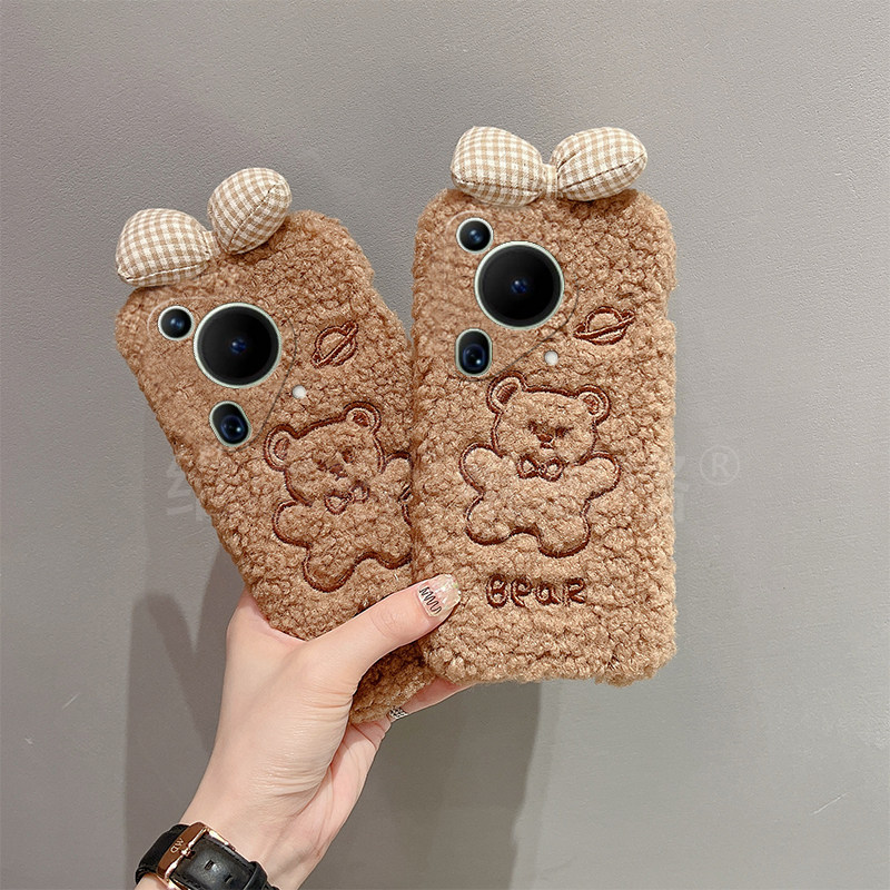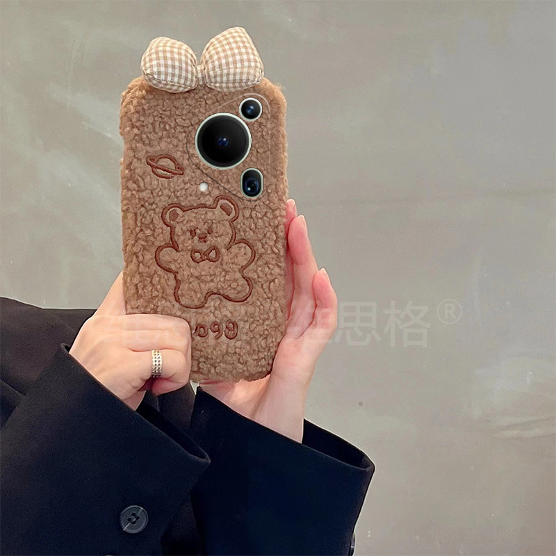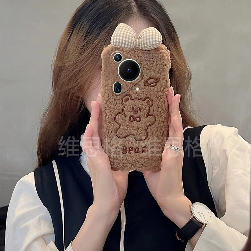 蝴蝶结小熊适用华为pura70手机壳70pro 畅享70ultra可爱趣味70art畅玩60pro毛绒绒mate50硅胶50e十40e30秋冬p