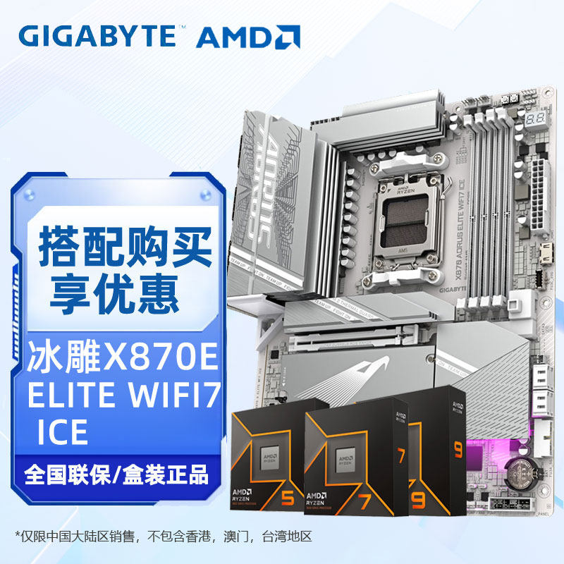 CPU主板套装 技嘉X870主板搭AMD锐龙9600X 板U套装 9900X 9700X