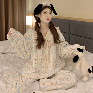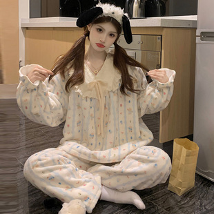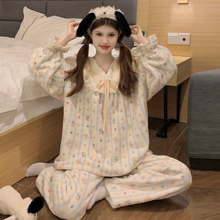 安之伴加厚珊瑚绒睡衣女秋冬季 保暖休闲甜美宽松加绒家居服套装
