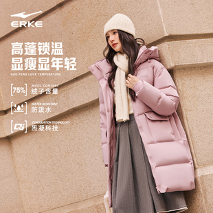 女士中长款 鸿星尔克长款 新款 冬季 好看棉服黑色大衣外套 羽绒服女款