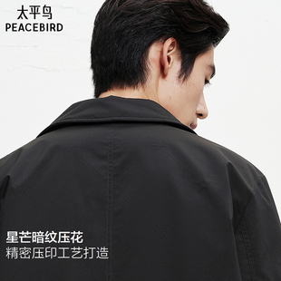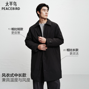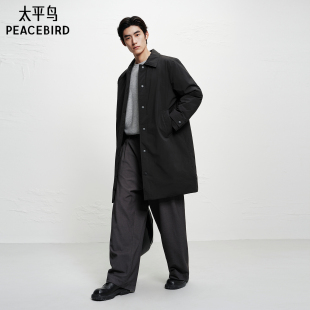 黑色商务休闲保暖翻领外套 冬季 太平鸟男装 风衣羽绒服男中长款