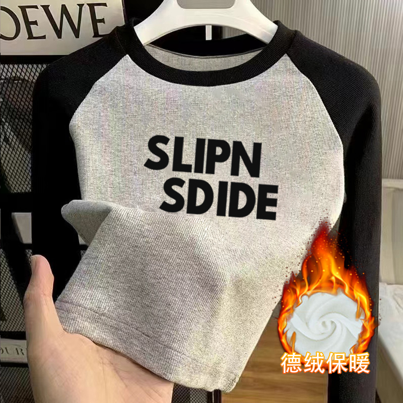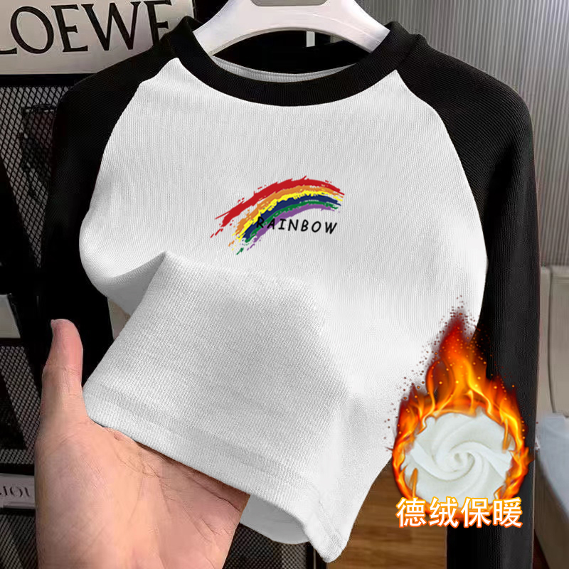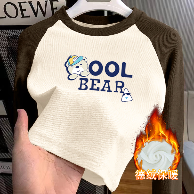 百搭长袖 秋冬韩版 T恤儿童宝宝保暖上衣 圆领加厚德绒打底衫 女童装